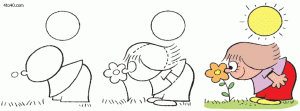 How to draw a girl smelling flower