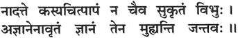 Nor does the Supreme Spirit assume anyone’s sinful or pious activities. Embodied beings, however, are bewildered because of the ignorance which covers their real knowledge.