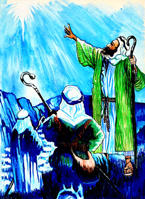 A new star was seen in the sky, along with other stars, one fine night and this star was so radiant that its bright rays spread light as bright as day on the gray hills of Bethlehem. The shepherds, who were resting after a hectic day, saw this strange, bright star and were frightened because of the unusual shine. Immediately, to their surprise, an angel came to them and said: “Do not be afraid; the star has come to bring you good tidings of great joy, and to show you the place where a little baby is born,–a little babe whose name is Jesus, and who will give peace and joy to the whole world.” The angel disappeared after saying this and the shepherds decided to go and see the child. They left their flock of sheep resting on the hillside and took their crook.