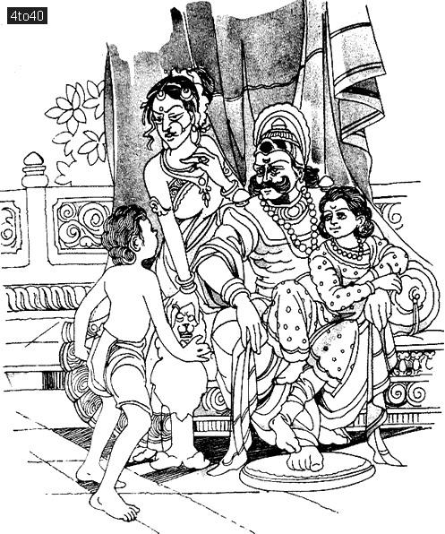 The king looked on sadly but did not dare protest. He was completely under Suruchi’s control and could not displease her.