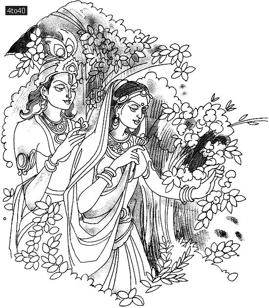 One bright morning, Krishna and his wife Satyabhama decided to visit Indra. He received them personally and took them to his palace. After some rest, Indra requested them to take a walk in his famous garden. The flowers that bloomed in all the colours of the rainbow delighted Satyabhama.