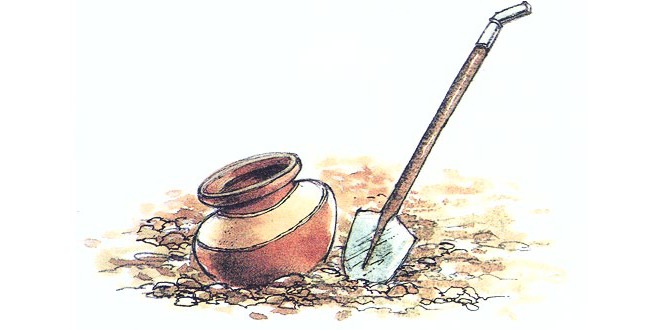 वह अपने घर के पिछवाड़े गई और देखने लगी कि कोई देख तो नही रहा। जब उसे तसल्ली हो गई तो उसने जमीन खोदकर उसमें बर्तन डाला और उसे वापस मिटटी से ढक दिया।