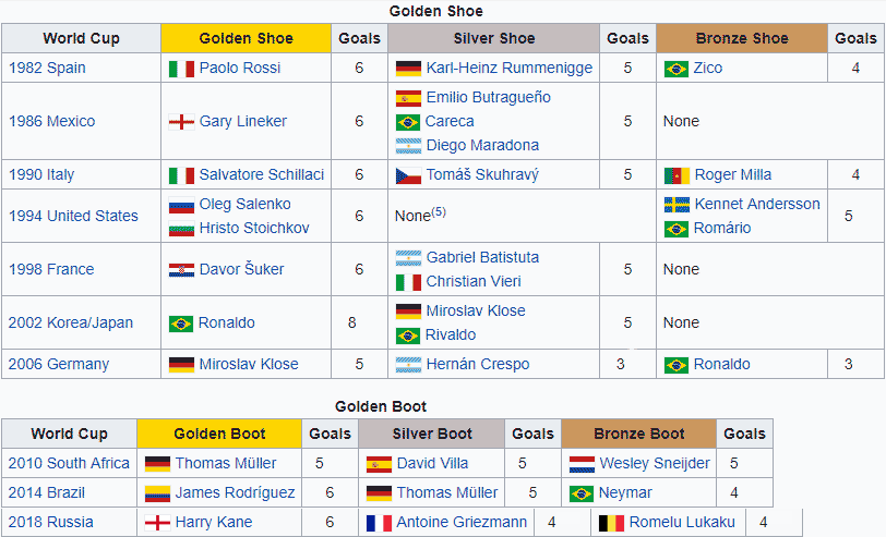 FIFA World Cup Awards: Golden Boot Award For Best Player