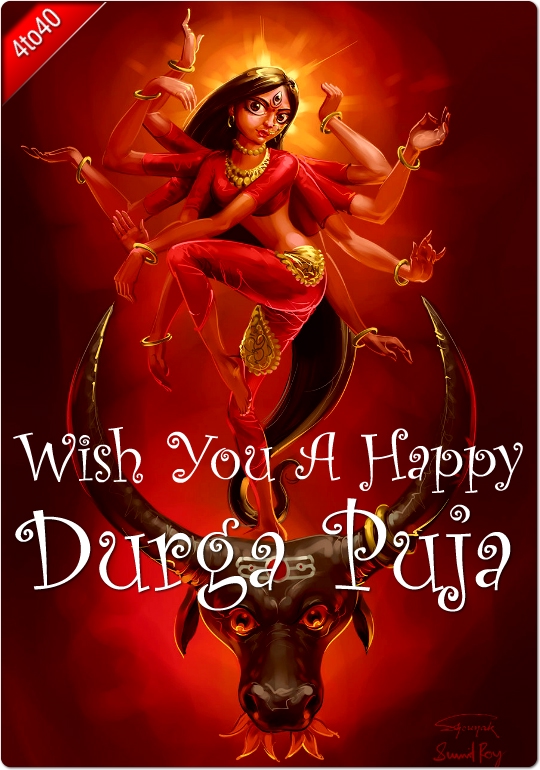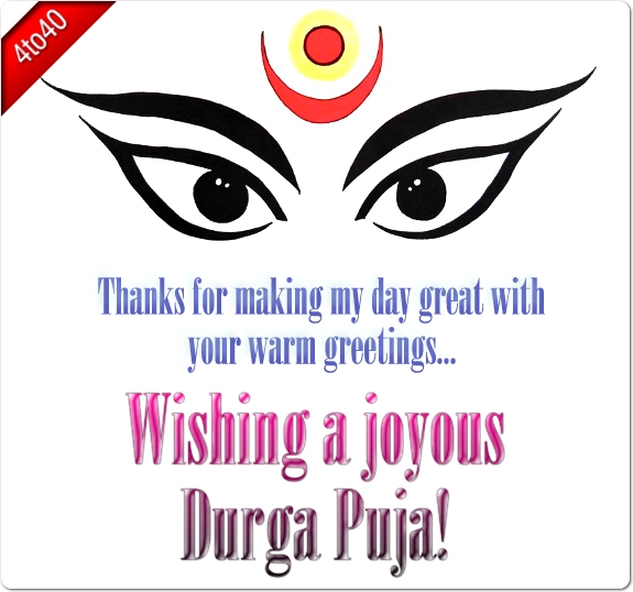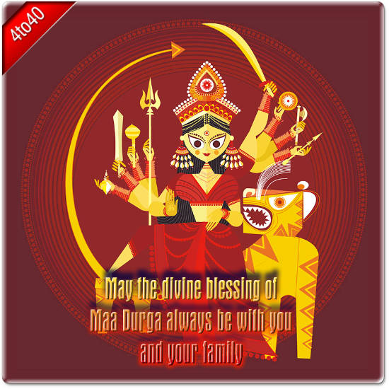 Durga Puja Greetings: Durga Pooja is one of the major Hindu festivals in India. It is celebrated with great pomp and show in the northern states of India like West Bengal, Bihar, Uttar Pradesh, Orissa and eastern states of Tripura. The atmosphere in these states turns completely festive and people over enthusiastically participate in every little activity related to the Pooja. The entire festival becomes like a huge get together ceremony where people share good wishes and blessings. Listed are free greeting cards which you can send to your dear ones.