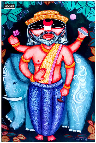 Lord Vishwakarma Acrylic painting On Paper