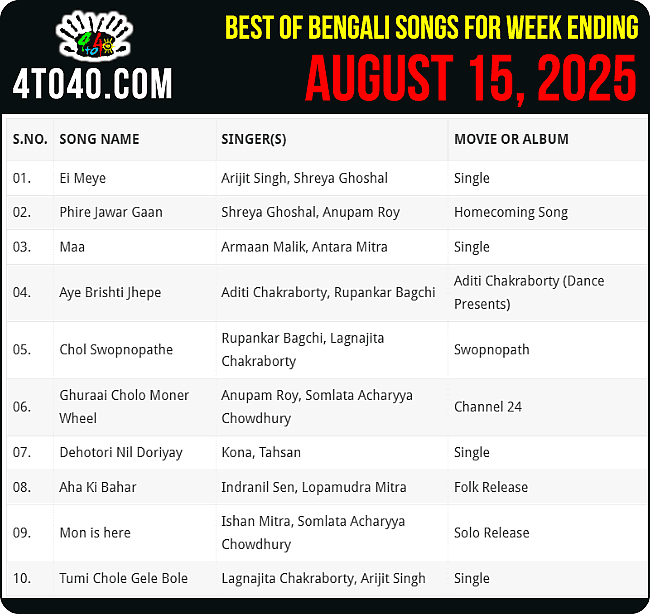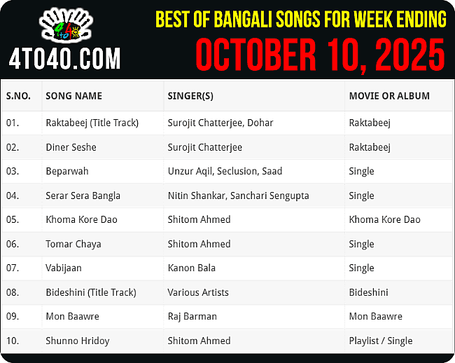 Top 10 Bengali Songs of The Week i.e. October 10, 2025