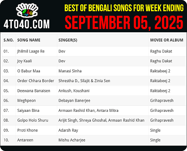 Best Ten Bengali Songs of The Week i.e. September 05, 2025