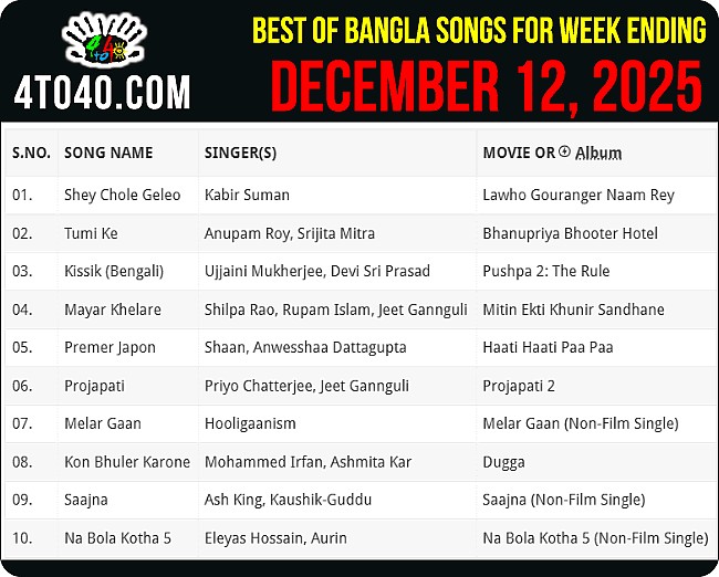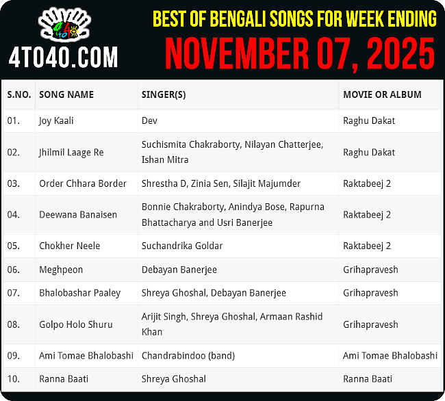 Best Ten Bengali Songs of The Week i.e. November 07, 2025