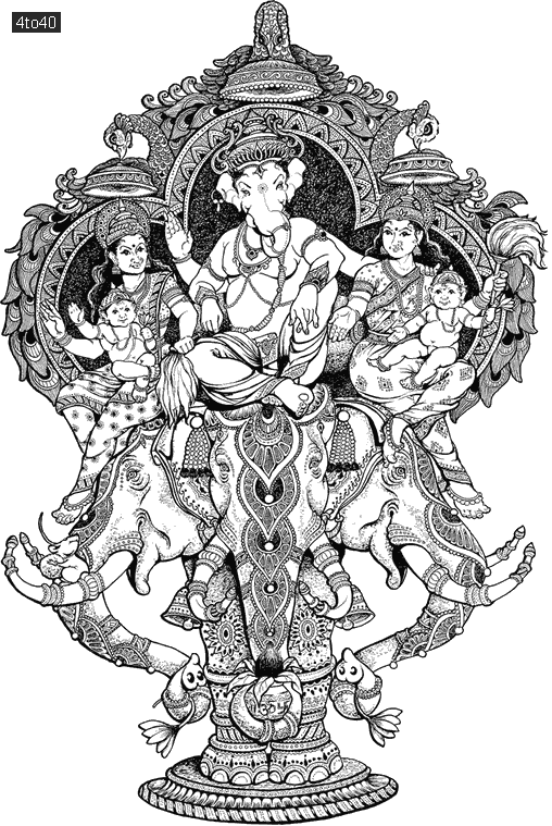 Ganesha with consorts Riddhi and Siddhi (spiritual power)