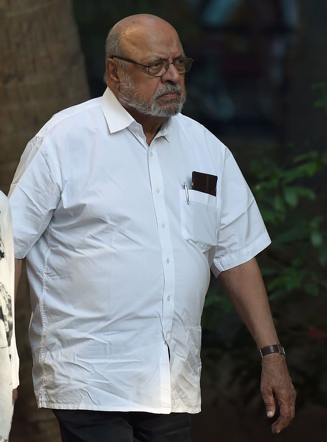 Director Shyam Benegal arrives to pay last respects to the deceased Indian actor Om Puri during his funeral in Mumbai on January 6, 2017