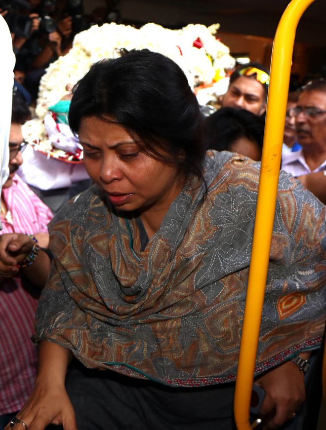 Nandita Puri, wife of the award-winning character actor Om Puri, attends his funeral in Mumbai on January 6, 2017