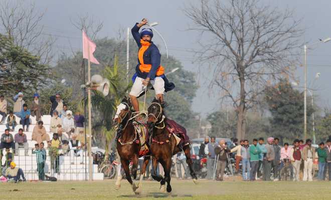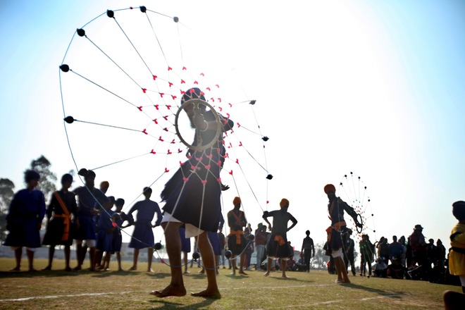 Nihangs performing Gatka on second day as they take part in the 80th MRF Kila Raipur Sports Festival in Kilaraipur on the outskirts of Ludhiana on February 5, 2016.