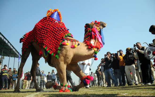 A dancing camel on second day as they take part in the 80th MRF Kila Raipur Sports Festival in Kilaraipur on the outskirts of Ludhiana on February 5, 2016.