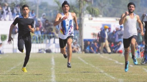 Athletes take part in the 100m race during the festival