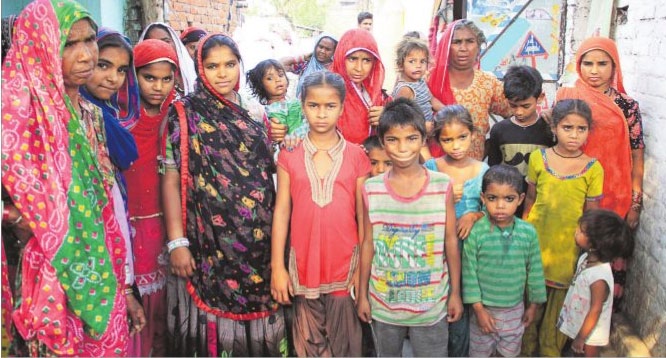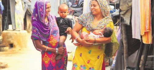 Poor Women with their children the Indira Colony slum in Jalandhar