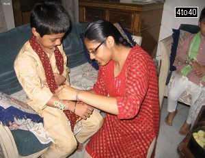 Kavneet Kaur tying rakhi to Apoorav Malik
