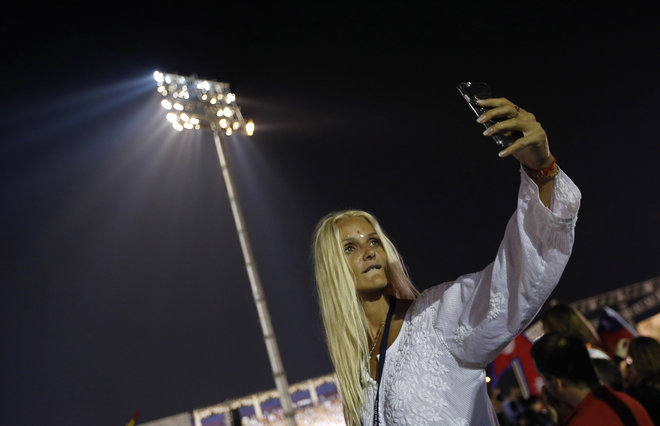 A participant takes a selfie at the World Culture Festival on the banks of a river in New Delhi on March 11, 2016
