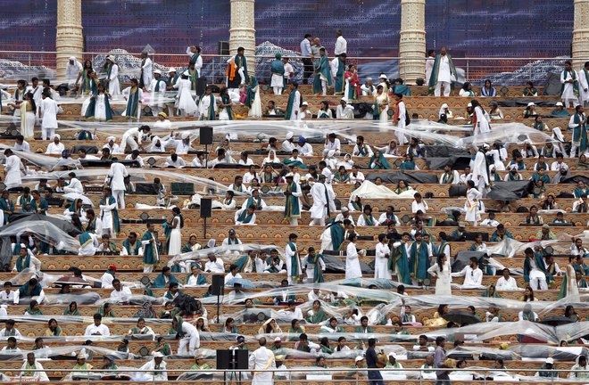Participants watch others performing dance during the World Culture Festival on the banks of the river Yamuna in New Delhi on March 12, 2016
