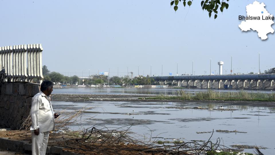 Bhalswa Horseshoe Lake, or Bhalswa Jheel, is a Lake in northwest Delhi. It was originally shaped like a horseshoe. However, over the years half of it was used as a landfill area now a low income housing colony, an extension of the nearby town of Bhalswa Jahangir puri