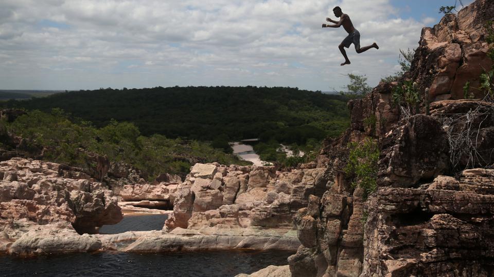 A boy dives inside the Roncador river, ahead of World Water Day, in Bahia, Brazil