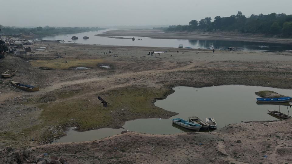 Boats are seen parked alongside a patch of river on the outskirts of Lahore, ahead of World Water Day. International World Water Day is marked annually on March 22 to focus global attention on the importance of water