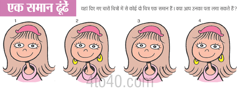 Find The Similar – एक समान ढूंढे – इस puzzle में आप को एक चित्र दिखाया जायेगा, उस चित्र में दो चीज़ें एक जैसी हैं। आप के पास केवल 180 seconds का समय है। कोशिश कर के देखिये। उत्तर चित्र में ही छिपा हैं, जो 180 seconds बाद दिखाई देगा। Spider Eater - Find The Similar: Fun Activity for Kids and Students Crocodile - Find The Similar: Fun Activity for Kids and Students Catch a Fish - Find The Similar: Fun Activity for Kids and Students Rat with cheese - Find The Similar: Fun Activity for Kids and Students Feeding the bird - Find The Similar: Fun Activity for Kids and Students Racoon - Find The Similar: Fun Activity for Kids and Students Postman - Find The Similar: Fun Activity for Kids and Students Smart Bear Smiling Dog Cat Dog Fight Cave Man Couple Skiing - Find The Similar: Fun Activity for Kids and Students Turtle Ride - Find The Similar: Fun Activity for Kids and Students Little Girl - Find The Similar: Fun Activity for Kids and Students Boy holding Kid Snake - Find The Similar: Fun Activity for Kids and Students Chewing Gum - Find The Similar: Fun Activity for Kids and Students Toad Spider Trumpet Player Poor Dog Panda Dog Cowboy Baseball Detective Fox Bear Wild Animal Musician Sledge Ride Sledge Ride Serpant Apes Postman Sailor Dog Dog at the door Piranha Fish Dad with the Kid Dog going for shower Smart Mouse Sea Pirate Ape Eating Banana Cat and Mouse Cat Catching Fish Family Potraits Girls Girls Combing Hair Happy Elephant xx Holy Cow Hungry Bear ] Hungry Crocodile Monster Night Owl Puzzled Lion School Bus Stop Shy Indian Kid Super Hero Violin Player Women