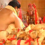 ध्यानु काफी हैरान हुआ और मां के दरबार में पहुंचकर दिन रात तपस्या करने लगा। मगर मां ने दर्शन नहीं दिए। आखिरकार ध्यानु ने मां को प्रसन्न करने के लिए अपना सिर काटकर मां को अर्पित कर दिया। तभी उसे मां ज्वाला शेर पर सवार होकर दिखाई दी। मां ज्वाला जी के विशाल रूप को देखकर ध्यानु प्रार्थना करने लगा। मां ने भी अपने भक्त की मुराद पूरी की और दोनों के सिर वापस जोड़ दिए।