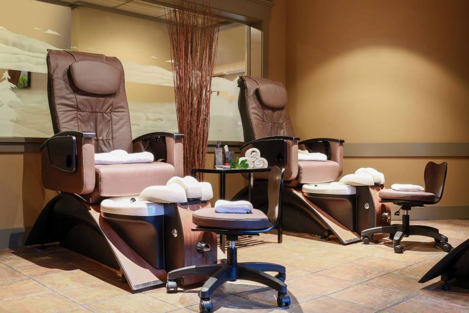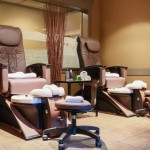 Pedicures are performed in our luxurious reclining thrones featuring jetted foot-soak tubs, heat and back massage rollers.