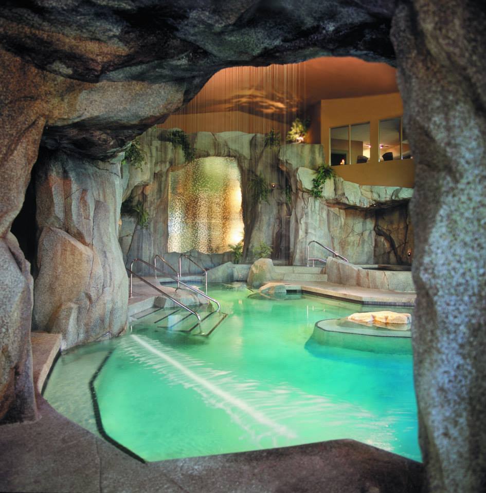 The Grotto Mineral Pool is a 2,500 square foot warm water pool is infused with natural minerals and trace elements which detoxify the body and rejuvenate the spirit. In addition, the Mineral Pool area includes a two story waterfall, an invigorating glacial plunge cascade and a non-mineralized whirlpool.